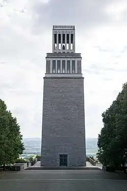 Der 45 Meter hohe „Turm der Freiheit“ wurde 1958 als zentrales Mahnmal der Nationalen Mahn- und Gedenkstätte Buchenwald errichtet. Er steht symbolisch für das Gedenken an die NS-Opfer und das antifaschistische Selbstverständnis der DDR. Eine Inschrift über dem Eingang des Turms nimmt Bezug auf den Schwur von Buchenwald: „Die Vernichtung des Nazismus mit seinen Wurzeln ist unsere Losung. Der Aufbau einer neuen Welt des Friedens und der Freiheit ist unser Ziel.“[1]