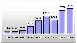 | 1852 | 4004 | darunter zehn Katholiken und 169 Juden[5] |