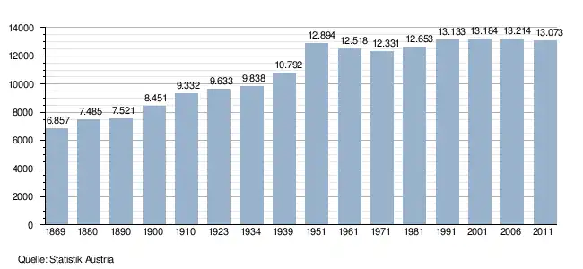 - ↑ a b c Statistik Austria: Bevölkerungsentwicklung 1869–2011 (PDF; 35 kB), Volkszählung vom 15. Mai 2001 (PDF; 10 kB).