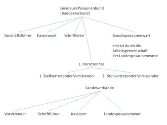 Ein Landesverband besteht dann, wenn er mehrere Chöre in einer klar begrenzten Region betreut. Jeder Landesverband, der die Satzung des GPB anerkennt, kann ordentliches Mitglied werden.[10] Ein Höhepunkt der Arbeit der Landesverbände sind die zum Teil jährlich stattfindenden Landesposaunenfeste in den Ländern. Es gibt folgende Landesverbände: