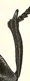 | Abb. 7: Fühler von unten, Ein- lenkung unter der Erweiterung der Wange |