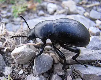 Die Art ist sehr wärmeliebend. Den Käfer findet man vom frühen Frühjahr bis Sommer an trockenen Stellen mit lockerem Pflanzenbewuchs, etwa in Weinbergen, Steinbrüchen, sonnigen Hohlwegen und an trockenen Waldrändern. In südlicheren Ländern findet man ihn in Grassteppen mit Büschen in bergigem und steinigem Gelände, wo er am hellen Tag bedächtig herumkrabbelt, dabei verharrt er jedoch gern unter einem Schutz (pholeophil), etwa unter Steinen oder unter den abgestorbenen Blättern am Grunde krautiger Pflanzen. Als Besonderheit wird erwähnt, dass man in Ungarn ein lebendes Exemplar im Dezember auf Schnee gefunden hat.[15] Der Käfer besitzt zu seiner Verteidigung Stinkdrüsen.[16] Er ernährt sich von pflanzlichen Überresten (phytodetritophag).
