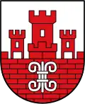 Blasonierung: „In Silber eine dreitürmige rote Zinnenburg, der mittlere Turm mächtiger mit zusätzlichem unteren Zinnenkranz; unten belegt mit einem silbernen Maueranker.“[16] |