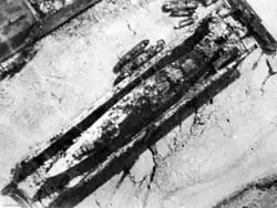 - 6. April 1941 – Eine einzeln fliegende Bristol Beaufort der RAF-Squadron 22 erzielte einen Lufttorpedotreffer im Achterschiff. Die Gefechtsladung des hierbei eingesetzten Torpedos vom Typ Mk XII hatte lediglich ein Gewicht von 176 kg. Als Folge des Treffers wurde die Außenhaut aufgerissen, das etwa 4,5 Meter weiter im Schiffsinneren gelegene Torpedolängsschott hingegen wurde noch nicht einmal deformiert.[3]