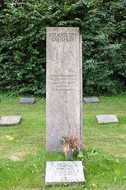 Auf dem Nordfriedhof Kiel erinnert eine Stele an das Schlachtschiff Gneisenau.