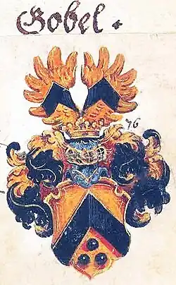 In der 2. Hälfte des 13. Jahrhunderts unterschreiben auf Akten des Herzogs von Pommern gelegentlich ein Blanckenburg und ein „Gobel“. Mit dieser Feststellung beginnt die Gobelsche Familienchronik.[2] Erst Anfang des 16. Jahrhunderts werden die (von) Gobel (auch: Gobelo) fassbar als Vögte, Räte und Geistliche im Dienst des Erzbischofs von Trier, bzw. in Diensten der kurtrierischen und kurmainzischen Wittelsbacher.
