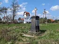Wenige Tage vor der Schlacht an der Katzbach kam es am 21. August 1813 bei Gnadenberg zu einem größeren Gefecht mit den Franzosen, bei dem viele russische Soldaten fielen. Sie wurden in einem Massengrab östlich von Gnadenberg[9] bestattet, das durch eine Säule gekennzeichnet war, die heute nicht mehr existiert. Zwei russische Offiziere begrub man auf dem Gottesacker der Brüdergemeine.[10] Ein Gedenkstein mit Kreuz für den russischen Husaren Natalotchka, möglicherweise eine Frau, kann heute noch besichtigt werden.[10] Er steht unmittelbar am nördlichen Straßenrand der Droga krajowa 94 rund 100 Meter östlich der Einmündung der Kasztanowa.