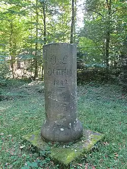 Im Jahre 1842 ließen Oberforstmeister von Kahlden und Revierförster Zaiser zu Ehren von Georg Ludwig Hartig einen Gedenkstein setzen und darum herum ein Arboretum anlegen. Hierzu ist im Forstlichen Exkursionsbericht und in der Oberamtsbeschreibung des Oberamts Schorndorf zu lesen, dass das Jubiläumsdenkmal (Goldbodendenkmal) von einer Anlage der „Hundert Hartig'schen Holzarten“ umgeben ist.[2] In einer anderen Quelle dem Hohengehrener Heimatbuch ist noch von 40 Holzarten im „botanischen Garten“ die Rede.[3]