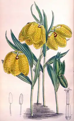 - ↑ Datenblatt Fritillaria aurea bei POWO = Plants of the World Online von Board of Trustees of the Royal Botanic Gardens, Kew: Kew Science.