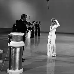 Goldie Hawn mit ihrem Vater Edward bei einer Probe für ein Fernsehspecial (1970)