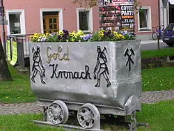 Das Dorf cranach oder kranach gewann durch den Abbau der Edelmetallvorkommen zusehends an Bedeutung. Burggraf Friedrich V. erhob den Ort am 29. September 1365 in Kulmbach zur Stadt. Damit gestand er gleichzeitig die Übernahme des Iglauer Bergrechts zu – die sogenannte Bergfreiheit. Ansässige und künftige Siedler sollten nach dieser Urkunde „Schutz und Schirm, Freiheit und Recht ohne Ansehen der Person, ob arm oder reich“ erhalten.[14] Aus dem Jahr 1398 stammt der erste schriftliche Nachweis des Namens Goldtkranach. In Bayreuth und in Schwabach ließ man Gulden aus Goldkronacher Gold prägen.