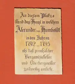 Im Jahr 1792 übernahm die zentrale preußische Verwaltung das Gebiet der bis dahin selbständigen Fürstentümer Ansbach und Bayreuth. Der Goldkronacher Bergbau war mittlerweile fast zum Erliegen gekommen, nachdem die Erträge sich stark verringert hatten. Die Berliner Verwaltung entsandte den 23-jährigen Alexander von Humboldt, um zu prüfen, in welchem Zustand sich Stadt und Bergwerke befanden. Er erstattete Bericht an das zuständige Ministerium und blieb in der Folge als Oberbergmeister in Goldkronach, um den Bergbau unter Anwendung neuer Technik wiederzubeleben.[16]