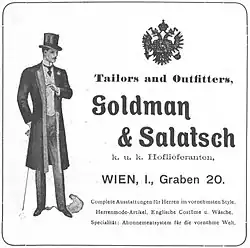 - ↑ Goldman & Salatsch. In: Jubiläums-Festnummer der kaiserlichen Wiener Zeitung 1703–1903. Beilage Kommerzieller Teil. Alfred von Lindheim. Druck und Verlag K. K. Hof- und Staatsdruckerei, Wien, 8. August 1903, S. 155, abgerufen am 31. Juli 2009.