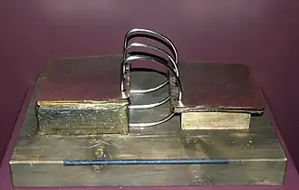 David Whitmer, ein weiterer der drei Zeugen, fügte hinzu, die Platten seien „auf der Rückseite gesichert mit drei Ringen (…), die es erlauben, die Platten umzublättern.“[11]