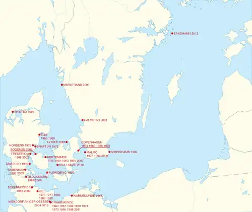 | 2018 | Simrishamn[3] | Søren Kæstel, Hellerup Sejlklub Alex Lindegaard Erik Andersen |