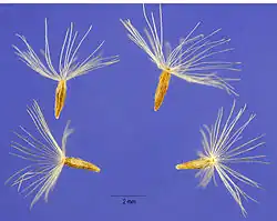 Die Achänen weisen meist acht bis zehn Rippen auf. Der Pappus besteht aus 25 bis 45 Borsten in zwei Reihen; manchmal sind die Borsten zusätzlich von 0,25 bis 0,5 Millimeter langen Schuppen umgeben.