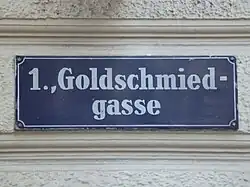 | Hist. Namen | Unter den Brotläden, Unter den Goldschmieden, Flaschnergassel, Schlossergässel, Eisgrübl |