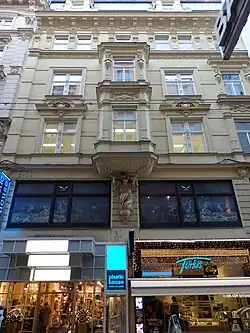Das ehemals hier befindliche Gebäude hatte die Hausnamen Zum goldenen Ritter und Zum Ritter Georg. Es wurde 1873 von der Wiener Baugesellschaft erworben und 1880 abgebrochen. An seiner Stelle errichtete Carl Schumann 1881 das noch heute bestehende späthistoristische Wohn- und Geschäftshaus.
