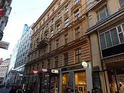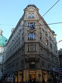 Das an drei Seiten freistehende Wohn- und Geschäftshaus zwischen Graben, Petersplatz und Goldschmiedgasse wurde 1874 von Oswald Meixner im historistischen Stil in Formen der Neorenaissance erbaut. Bemerkenswert ist die Passage mit Doppelpilastergliederung und Tambourkuppeln zwischen Gurtbögen mit aufwändigen Lünettengittern. Im überdachten Innenhof befinden sich noch Schaufenster aus der Bauzeit. Im Keller des Hauses befand sich das Jazzlokal Fatty's Saloon, heute das Garage X Theater Petersplatz.