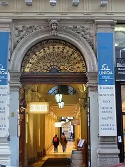 Das 1949 errichtete Bürohaus ist Sitz des Bankhauses Schellhammer & Schattera. Eine Geschäftspassage führt zum Graben und zum Café de l'Europe. In der in der Mitte erweiterten Passage finden sich noch originale Geschäftsportale aus den 1950er und 1960er Jahren.