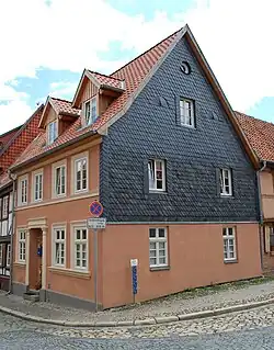 - Landesamt für Denkmalpflege Sachsen-Anhalt (Hrsg.): Denkmalverzeichnis Sachsen-Anhalt. Band 7: Falko Grubitzsch, unter Mitwirkung von Alois Bursy, Mathias Köhler, Winfried Korf, Sabine Oszmer, Peter Seyfried und Mario Titze: Landkreis Quedlinburg. Teilband 1: Stadt Quedlinburg. Fliegenkopf, Halle 1998, ISBN 3-910147-67-4, S. 118.