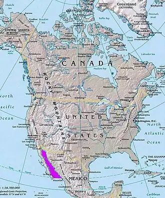 ![]() Karte Nordamerikas, Golf von Kalifornien violett markiert | |