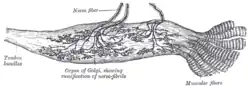 Das bei allen Wirbeltieren vorhandene Golgi-Sehnenorgan, benannt nach Camillo Golgi, ist ein Sinnesorgan der Tiefensensibilität. Es ist eine Art Nervengeflecht, das der Messung und Regelung der Muskelspannung dient.[1] Es befindet sich am Übergang zwischen Muskel und Sehne und ist zusammen mit den Muskelspindeln für die Propriozeption der Muskulatur zuständig.