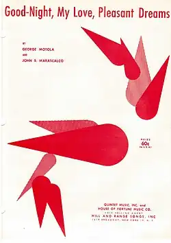 - ↑ a b George Motola, John Marascalco: Good-Night, My Love, Pleasant Dreams. Quintet Music, House of Fortune Music, Hill and Range Songs, New York 1956 (Notenausgabe).
