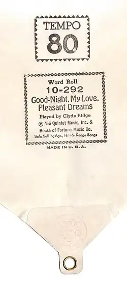 - 1956 – Clyde Ridge, QRS 10-292, Word Roll für Pianola