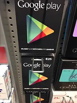 - ↑ Google Play-Geschenkkarten jetzt auch in Deutschland, Offizieller Google Produkt-Blog, abgerufen am 9. Juli 2013.