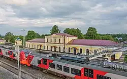 Der Bahnhof der Stadt liegt zwölf Kilometer entfernt beim Dorf Welikowo an der 1862 eröffneten Eisenbahnstrecke Moskau–Nischni Nowgorod (Streckenkilometer 363), auf der heute ein Großteil der Züge der Transsibirischen Eisenbahn auf ihrem Westteil ab Moskau verkehrt.