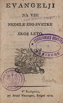 | Aus dem Bestand der Universitätsbibliothek Maribor (Gospejna ulica): Evangelium auf Slowenisch, 1818. | |