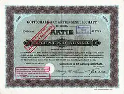 Gottschalk & Co. entwickelte sich bis in die Zeit nach dem Ersten Weltkrieg ähnlich wie die Konkurrenten Salzmann & Comp. und Enka Spinnfaser in Bettenhausen. 1905 erfolgte die Übernahme des Unternehmens Dieterici & Lebon in Eschenstruth und die Umwandlung in eine Aktiengesellschaft.[2] Nach der Machtübernahme durch die Nationalsozialisten wurde das Unternehmen durch die Kasseler Industrie- und Handelskammer arisiert und als „kriegswichtige Produktion“ dem Unternehmen Henschel angegliedert. Diese Entwicklung erfolgte ab 1936, zuletzt auf Weisung des für den Vierjahresplan zuständigen Ministers Hermann Göring und letztlich den in Hitlers Stab für Rüstung zuständigen Albert Speer.