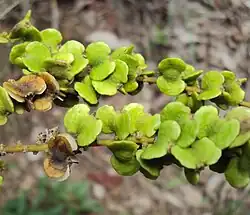 Zweig mit Blättern und Blütenständen von Gouania hillebrandii | ||||||||||||