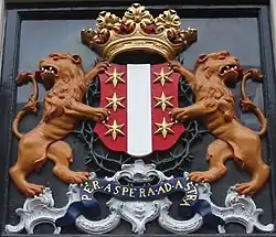 Das am 24. Juli 1816 durch den Hoge raad van de Adel offiziell festgelegte Wappen zeigt ein rotes Schild mit zweimal drei sechsgezackten goldenen Sternen und weißem Pfahl, das von einer fünfzackigen goldenen Krone bedeckt ist und von einem aufrecht stehenden Löwenpaar gehalten wird. Die Stadt führt das Motto: per aspera ad astra, zu deutsch: „Durch rauhe Lüfte (steigt man empor) zu den Sternen“.