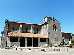 - Der Vorgängerbau der heutigen Pfarrkirche Saint-Hilaire entstand um das Jahr 900. Im 12. Jahrhundert erhielt der Bau ein neues dreischiffiges Langhaus mit vierteiligen Bündelpfeilern im poitevinischen Stil; auch der gedrungen wirkende Vierungsturm stammt aus dieser Zeit. Über das Alter und die Funktion(en) der Südvorhalle (portique) besteht Unklarheit. Die querhausartigen Kapellenanbauten sind hingegen eine Zutat des 19. Jahrhunderts. Die Bündelpfeiler des Langhauses sind mit zahlreichen gemalten Wappenschilden geschmückt. Der Kirchenbau wurde bereits im Jahr 1909 als Monument historique unter Schutz gestellt.[1]