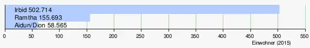 Bedeutende Orte sind Irbid, Ramtha und Aidun (Dion). Von den 1.770.158 Einwohnern lebten 1.634.771 (92,35 %) in städtischen Gebieten.