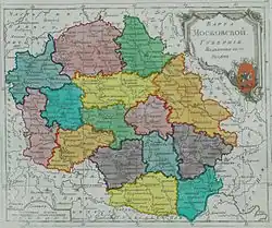 Das Gouvernement Moskau entstand durch einen Erlass des Zaren Peter I. vom 18. Dezember 1708. Die Gründung der Gouvernements ging dabei einher mit einer Reihe weiterer Maßnahmen im Rahmen der Petrinischen Reformen. Am 29. Mai 1719 wurde das Gouvernement zunächst in neun Provinzen (Провинции) eingeteilt; die vorher bestehende Verwaltungseinheit der Doli (доли) wurde abgeschafft. Diese waren: