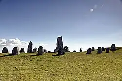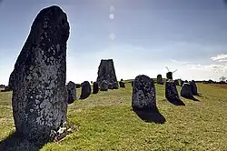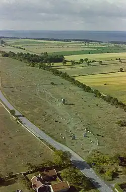 Nördlich des Dorfes Gettlinge beginnt die Reihe von vorzeitlichen Kultstätten. Viele wurden durch Steinbruch oder Schatzsuche zerstört. Auf dem Gräberfeld gab es etwa 250 Gräber. Heute sind noch mehr als 200 erhalten.[1] Die meisten sind typische Hügel der jüngeren Bronze- und Eisenzeit. In ihnen fand man Steinsärge und Körperbestattungen innerhalb quadratischer und runder Steinsetzungen. Seine stärkste Ausprägung erreicht das Feld im nördlichen Teil. Die großen Kalksteinplatten dort hat man wahrscheinlich errichtet, um die Bedeutung des Platzes herauszustellen. Auf einer etwa 30,0 Meter langen Schiffssetzung, die aus 23 dicht stehenden Granitsteinen besteht, finden sich etwa 20 schalenförmige Vertiefungen.