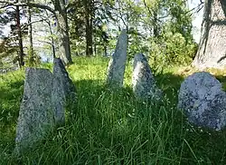 Auf dem Gräberfeld liegt eine der größten erhaltenen Schiffssetzungen Östergötlands. Die Gräber am Ufer des Åsunden werden in die Eisen-, Vendel- und Wikingerzeit datiert (500–1050 n. Chr.)