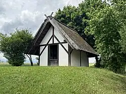 Am Rande des Gräberfeldes wurden mehrere Pfostengruben entdeckt, für die eine Interpretation als Holzkirche vorgeschlagen wurde. An der Fundstelle wurde eine Rekonstruktion errichtet.