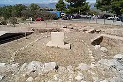 Von der Umfassungsmauer ist im Norden ein 18 m langes Teilstück erhalten. Über Grab Ρ (Rho) wurde ein Schutzdach aus Beton errichtet.