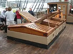 Die meistens quadratischen Löcher hatten eine Seitenlänge von nur wenigen Zentimetern, damit man mit dem Schuhabsatz nicht stecken bleiben konnte. Die Grätings zur Lukenabdeckung waren meist abnehmbar oder aufklappbar.