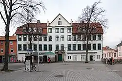 Ansicht der Fassade zur Goethe-Alle und der Schmalseite zum Leinekanal (Aufnahme 2018) -
