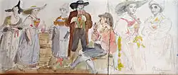 Der Tiroler Landreim[16] bezeugte schon 1558, dass der Grödner Loden bekannt war: Bestaunt sind Layener Weizen … und Grödner Loden steif[17] Weizen, Obst und Wein konnten wegen der Höhenlage in Gröden nicht angebaut werden, deshalb mussten sich die Grödner von jeher um weitere Einnahmequellen neben Landwirtschaft und Viehzucht kümmern. Das Holzschüsselndrehen scheint im 16. und 17. Jahrhundert (größere Schüsseln wurden schon im Wald gedreht) eine größere Bedeutung gehabt zu haben. Ab dem 17. Jahrhundert war das Spitzenklöppeln ein wichtiger Tätigkeitszweig. Aus dieser Zeit stammt die Sprachwendung Ji cun l puntl, zurückführend auf den Brauch, dass Frauen sich zur Klöpplerei und zu Gesprächen versammelten. Die Klöpplerei fand um 1830/1840 in Gröden ein rasches Ende, als die Herstellung von Holzspielzeug und Kleinplastiken sich in jeder Familie verbreitete und ein wichtiger Ertragszweig der Grödner Wirtschaft wurde. In Gröden wurden jährlich bis zu eine Million Holzpuppen hergestellt.[18]