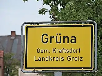 Grüna ist ein Ortsteil von Kraftsdorf im Landkreis Greiz in Thüringen.