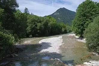 ![]() Mündung des Grünaubachs in die Alm in Grünau | ||
