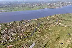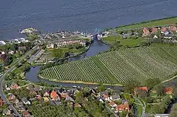In Grünendeich liegt der Fähranleger Lühe, von dem aus zwei Schiffslinien verkehren: