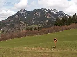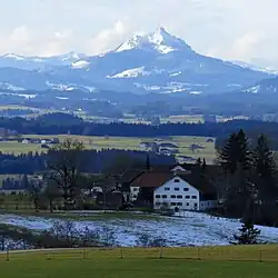 | Blick von Westen zum Grünten mit Burgberg im Allgäu | ||