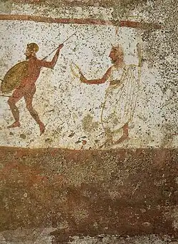 - ↑ Bernard Andreae u. a.: Malerei für die Ewigkeit. Die Gräber von Paestum. Ausstellung Bucerius Kunst Forum Hamburg, 13. Oktober 2007 bis 20. Januar 2008. Hirmer, München 2007, ISBN 978-3-7774-3745-3, S. 104–111, hier S. 104